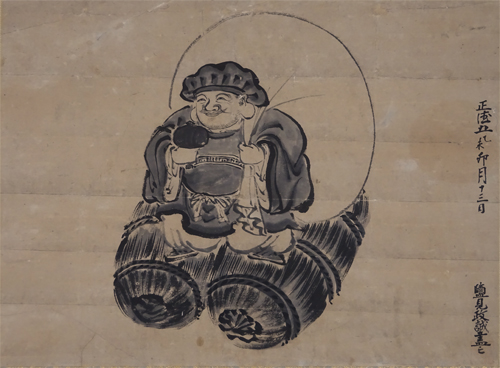 現存を確認できるのは、右の正徳5年紀(1715)の「大黒図」くらいしか確認されていません。