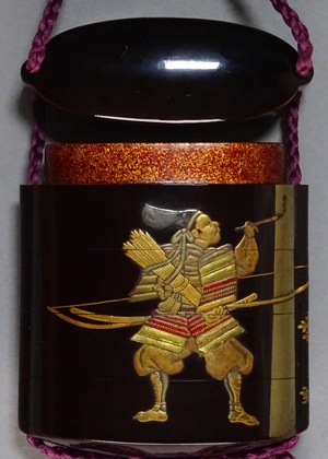 幸阿弥家14代で幕府御細工所の御蒔絵師・幸阿弥因幡長孝の作品です。『太平記』に登場する人見四郎入道恩阿が、