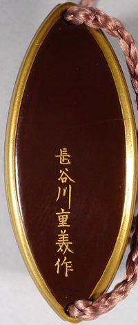 底部左下に「長谷川重美作」の蒔絵銘があります。