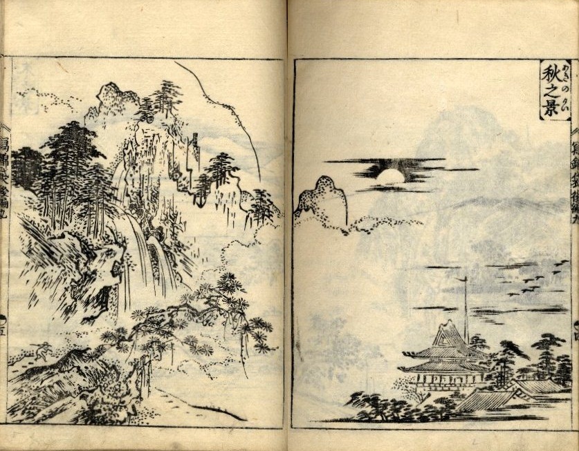 この工人としては珍しい唐山水図です。表面の意匠が橘守國の挿絵による『絵本通宝誌』巻9の「秋之景」の図を用いたことは明らかでしょう。