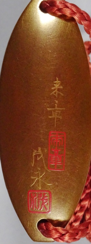 底に中島来章の下絵銘「来章」に朱漆で「来章」の朱文方形印があり、