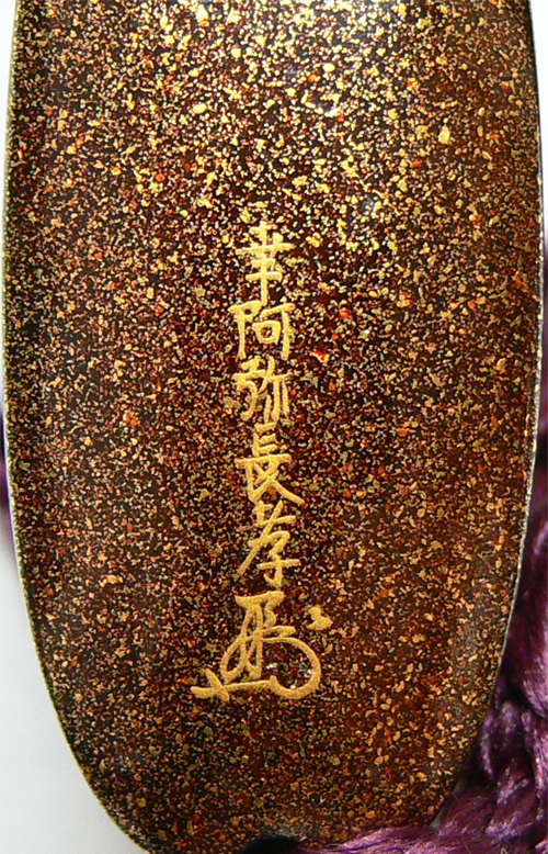 底部左下に、小さな字で「幸阿弥長孝(花押)」の蒔絵銘があります。