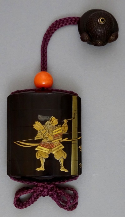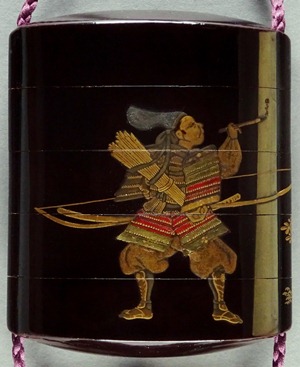 幸阿弥家14代で幕府御細工所の御蒔絵師・幸阿弥因幡長孝の作品です。『太平記』に登場する人見四郎入道恩阿が、