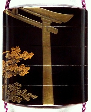 石鳥居は青金粉の高蒔絵で描割で表されています。