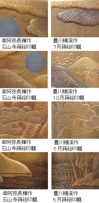 作風から梶川系の蒔絵師と考えられ、2代豊川楊溪作「定家詠十二ヶ月蒔絵印籠」