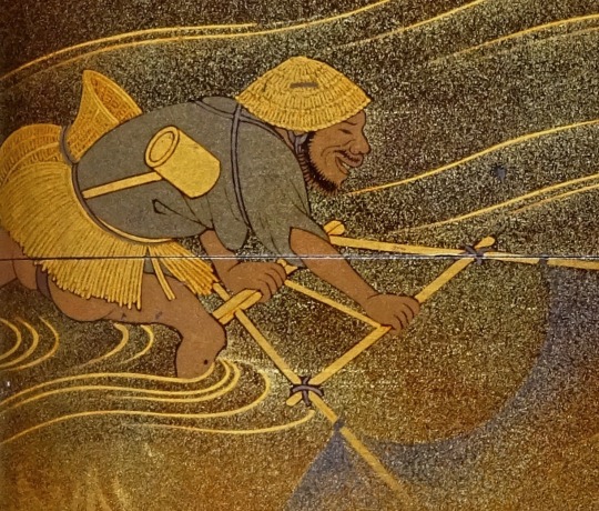 特に漁夫の人物表現は見事で、着衣には青漆や弁柄漆などの色漆も用い、