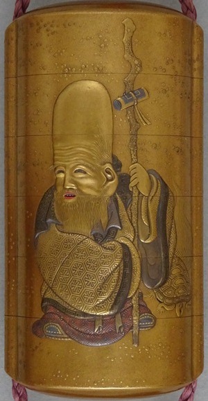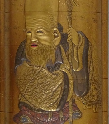・金粉溜地に高蒔絵で福禄壽の肉取りが非常に見事です。0.6mmの高上げをしていますが、
