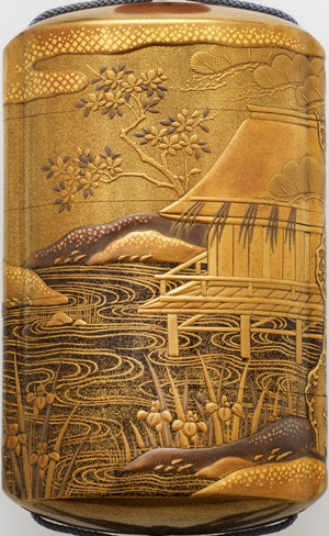 ・金粉溜地に肉合研出蒔絵で緻密に表しています。