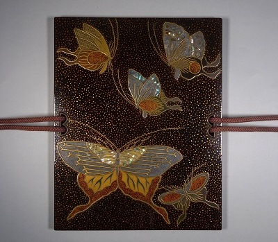蝶の配置が異なる同趣の板文庫で、同様の箱に納められ、硯箱が失われたものが現存しています。